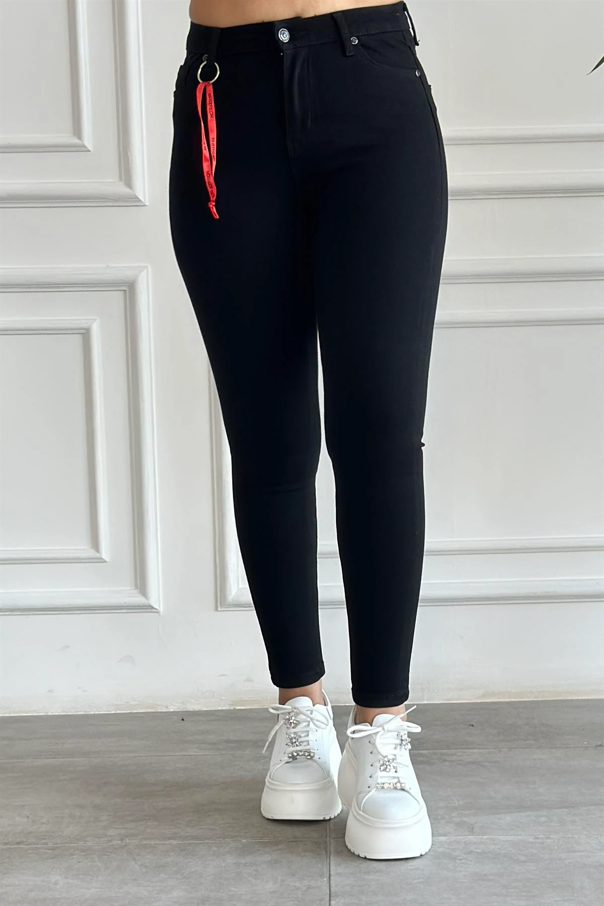 Cep Yan Ve Paça Taş Detaylı Yüksek Bel Kot Pantolon