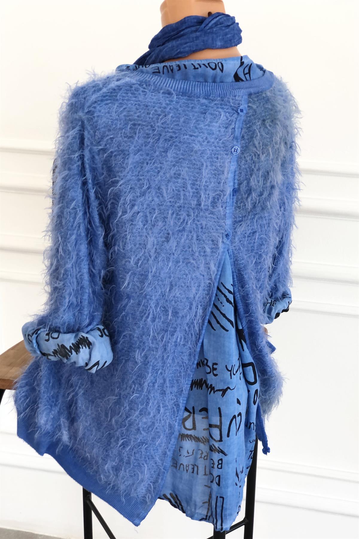Fular Detaylı İçi Atletli Tiftik Örme Bluz
